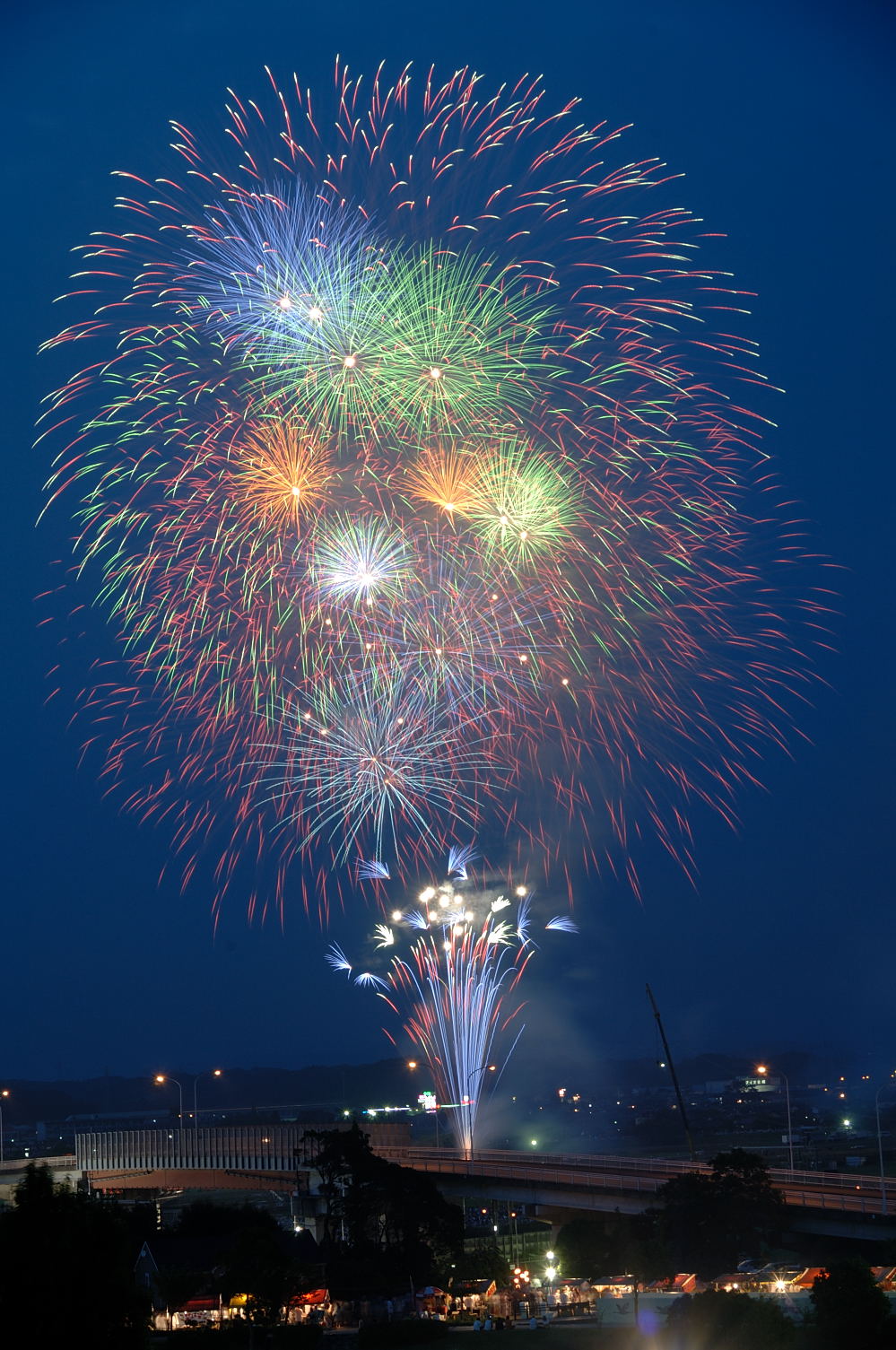 | 弟と観覧。 午前中用事が有り昼から移動。16時過ぎに浜松へ。 遅い到着な為浜松の駅周辺の有料Pへ入れ電車にて移動。 観覧場所は愛野公園へ(18:00頃)遅い到着でかなりの人が 居たが、公園は広く、なんとかそこそこ満足する場所を確保。 プログラムは駅にて入手。驚いたのがプログラムの内容。でかい! 気合の入ったプログラムで、力の入れようが伺える。 放送もはっきり聞こえ、打ち上げ場所を俯瞰する事に。 今回袋井は行く予定ではなかった。もっと近場を考えていたのだが、 中々良いと言う評判に袋井行きを決断。 花火自体は各地の花火の良いとこ取りの感があるが、陣取った位置が 適度に距離が有る為くつろいで観覧&撮影が可能だった。ゆったり観るのも 機材を回りの人にけられないか心配しなくてよろしかった。 打ち上げ開始はまだ薄明かりの有る時間から始まり約2時間。 ワイドが多く、メロディスターマインの割合がかなり多く素晴らしかった。 また単独の打ち上げは間隔が狭い為1カット1玉と言う訳には行かなかった。 一番印象に残ったのが優勝した磯谷煙火店の”スターオパール・光の宝石” 使用していた音楽も素晴らしいが、この後各所で見かけたが特徴的な ”スターオパール”には心躍る素晴らしさがありました。 よほどの事が無い限り、これからはふくろいの花火を観覧し続けようと思う 内容だった。この日は各地の花火重点開催日で、愛知県でも岡崎、岐阜でも 長良川と言った大きな大会が目白押しで苦渋の選択をする事になるのだが 来て良かった。実は弟が当初は行けそうに無かった為、 比較的近い(袋井の半分の)岐阜は長良川の花火を金華山に登り俯瞰で 撮るつもりだったが、前日に急遽行けるようになり、袋井を選択。 大変だったのが花火が終わってから。袋井駅まで激込みで、駅に入るのに1時間も 並ばされた。身の危険を感じる程だった為、翌年からは移動手段を少し考えるか、 花火終了後1〜2時間時間をおいてから帰るか決めないといけないとひしひしと 感じた。間違っても子供をつれて袋井駅には花火終了直後は行かない事です。 |